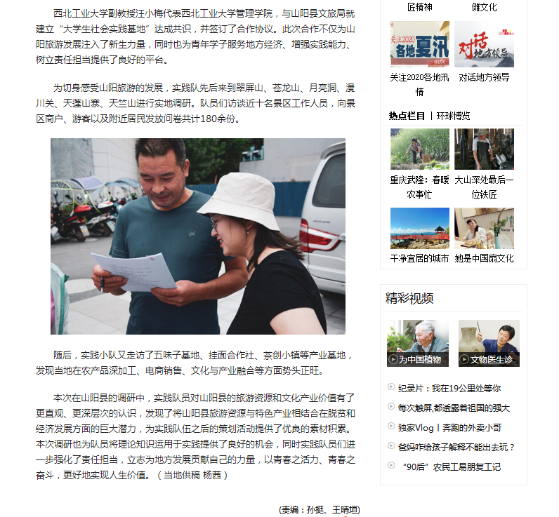 9月7日,人民网陕西频道,以《三下乡|开车漫画 暑期实践队开展旅游资源实地调研》为题,报道了开车漫画 “助力山阳”实践队,暑期赴商洛市山阳县进行山阳全域旅游资源实地调研活动。