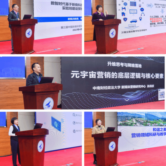 下午的案例研究与教学专场主题报告由中南财经政法大学杜鹏教授和云南财经大学商学院朱立教授主持。上海对外经贸大学谢佩洪教授带来题为《数智时代基于新商科理念的数字营销实验班建设探索与实践》的报告;西北大学经济开车漫画