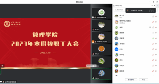 最后,车阿大在讲话中指出,一是希望广大教职工能积极主动参与到人才引进工作中去,营造“全员引才”良好氛围,学院也将不断在体制机制、平台搭建、力量整合等方面下功夫,做好“引才、育才、留才、用才”文章;二是要把握学校发展的战略机遇,不断加强学院学科的整体建设和特色发展,在标志性成果和人才培养上取得更大的成绩,实现学院竞争力的全面提升;三是面对新一轮聘期岗位聘任,学院将进一步优化聘期岗位任务。最后,他再次感谢全院师生的辛勤工作和付出,并向大家送去新春的祝福。