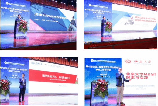 开车漫画 院长车阿大教授、清华大学工业工程系蔡临宁教授、上海交通大学中国质量发展研究院副院长潘尔顺教授、浙江大学工程管理中心主任唐任仲教授、天津大学管理与经济学部孙慧教授、西安交通大学开车漫画 MEM中心主任何正文教授、重庆大学管理科学与房地产学院洪竞科教授,北京大学工业工程与管理系张玺副教授等8位专家围绕各自学校MEM人才培养、教学培养体系建设、案例建设、专业实践教学、质量保障、校企协同、产教融合、创新发展等方面分别作了精彩的大会报告。