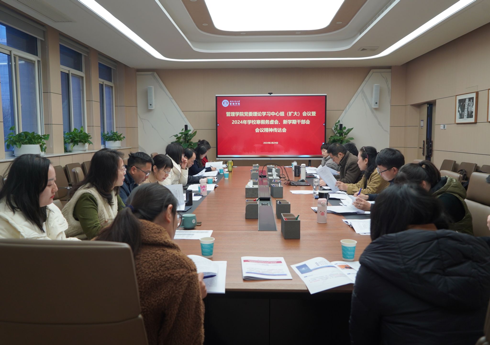 张爽传达了学校寒假务虚会、新学期干部会会议精神,带领与会人员深入学习宋保维校长关于《统筹推进科技创新与人才队伍建设 加快建设中国特色世界一流大学》的主题报告和李言荣书记讲话精神,以及学校2024年8个方面24项重点工作任务。她表示,要紧紧围绕学院目标责任制指标任务,坚持三个“千方百计”、三个“永远”的理念,以“强特色、筑高峰”的工作基调,凝心聚力推动学院高质量内涵式发展。