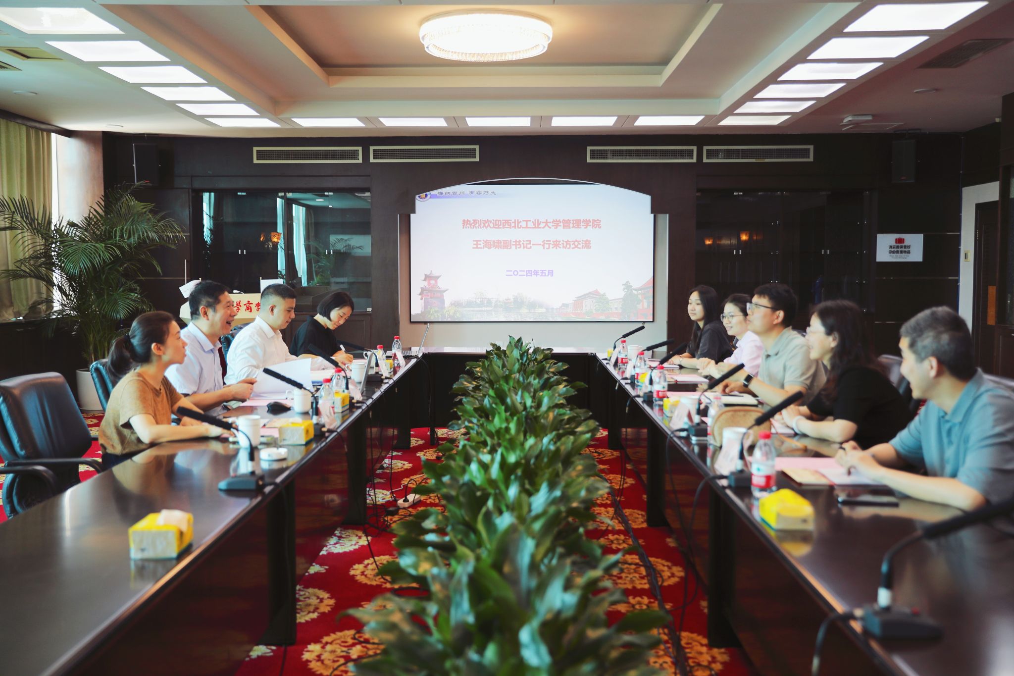 在四川大学商学院,党委书记李晓峰对王海啸一行表示热烈欢迎,党政办主任巫科、学生工作办公室主任袁媛、副主任党慧丽参加了座谈会。李晓峰系统介绍了四川大学商学院的发展历程、组织架构及党建特色等内容。双方围绕党建品牌建设、学风建设、创新创业教育、升学就业等方面的具体问题进行了广泛和深入地探讨,取得了良好的效果。