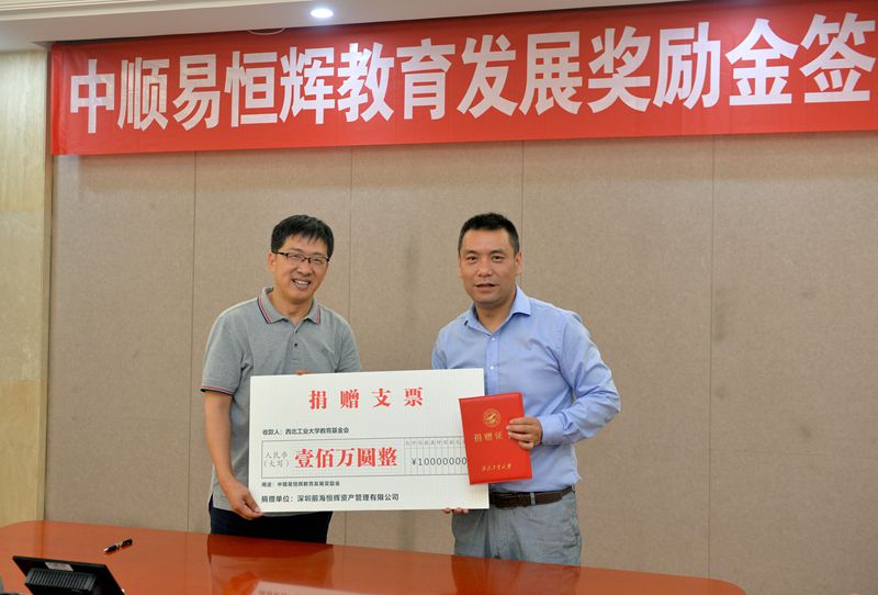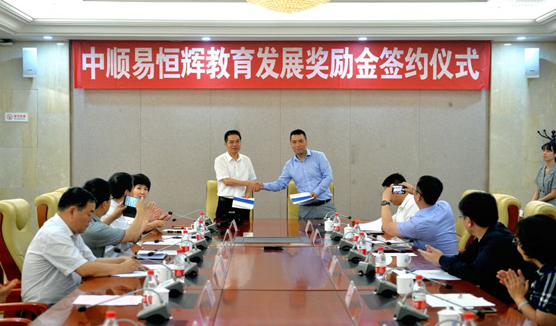 举行“中顺易恒辉教育发展奖励金”签约仪式。深圳前海恒辉资产管理有限公司(简称恒辉)向学校捐赠百万设立奖励金,用于优秀学生奖学金和助学金等。
