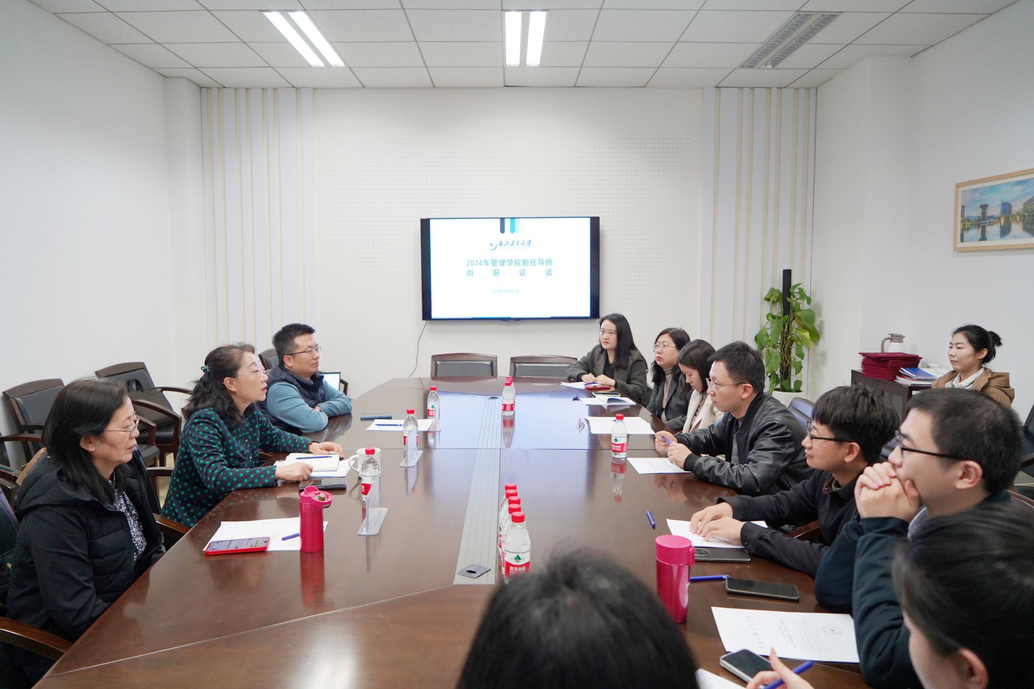 于10月31日下午,召开了新任研究生导师岗前谈话会。学院党委书记张爽,学院副院长贾明,博士研究生导师王莉芳,新任博士研究生导师傅陈翼、李乘龙、黄珍、张莹、王娟,新任硕士研究生导师田皓文、郭利敏、张林参加了本次谈话会。