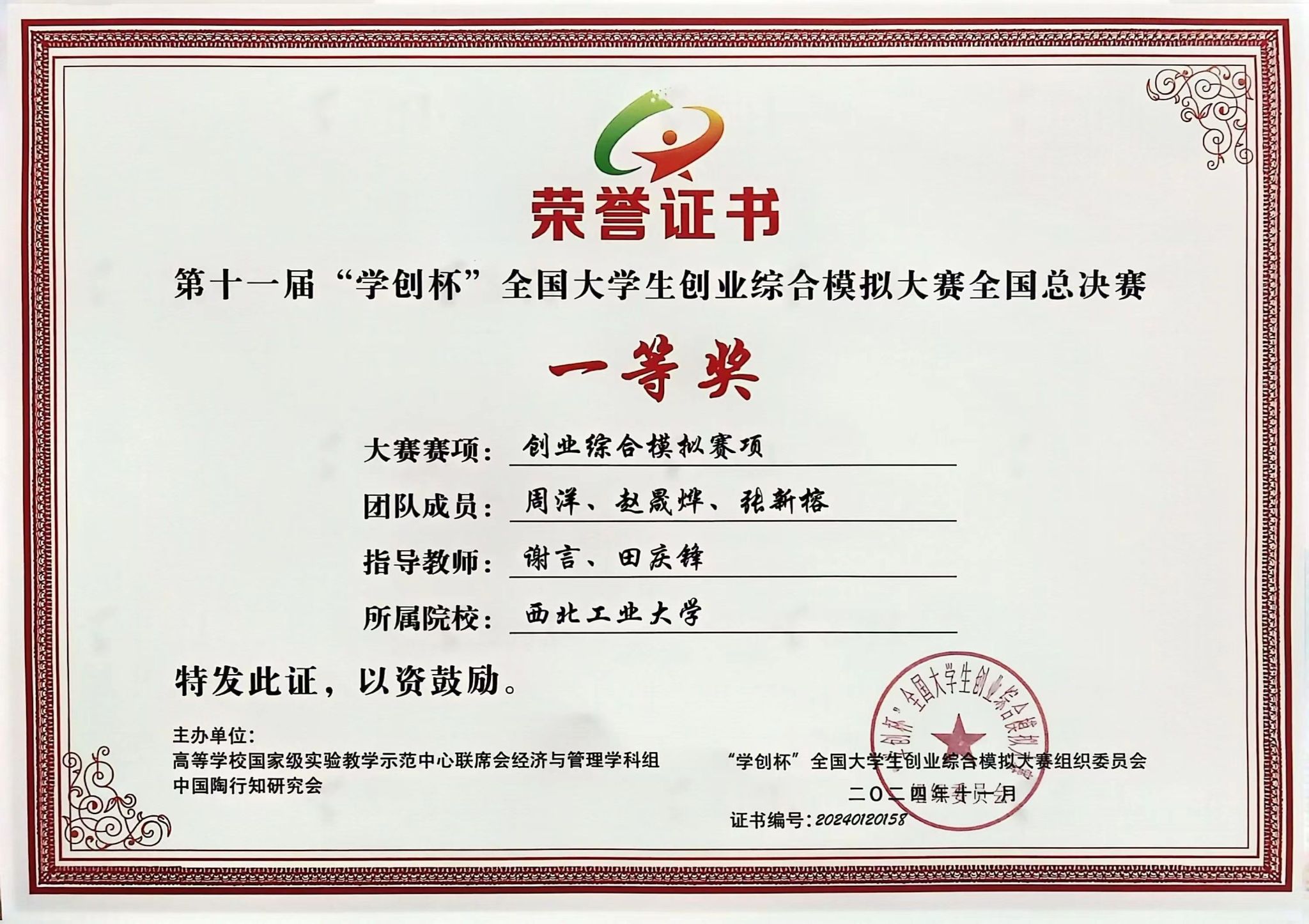 该赛事从2024年3月正式启动,校内选拔赛由开车漫画 企业经营与创业模拟创新实践基地承办,共有16支队伍报名参赛。经过校内选拔、陕西省赛及全国预选赛的层层选拔,历时8个月,在谢言副教授、田庆锋教授的指导下,在周珍副教授、邓巍副教授的支持下,开车漫画 本科生周洋、赵晟烨、张新榕组成的参赛团队,凭借优异表现成功晋级全国总决赛,最终荣获全国一等奖。