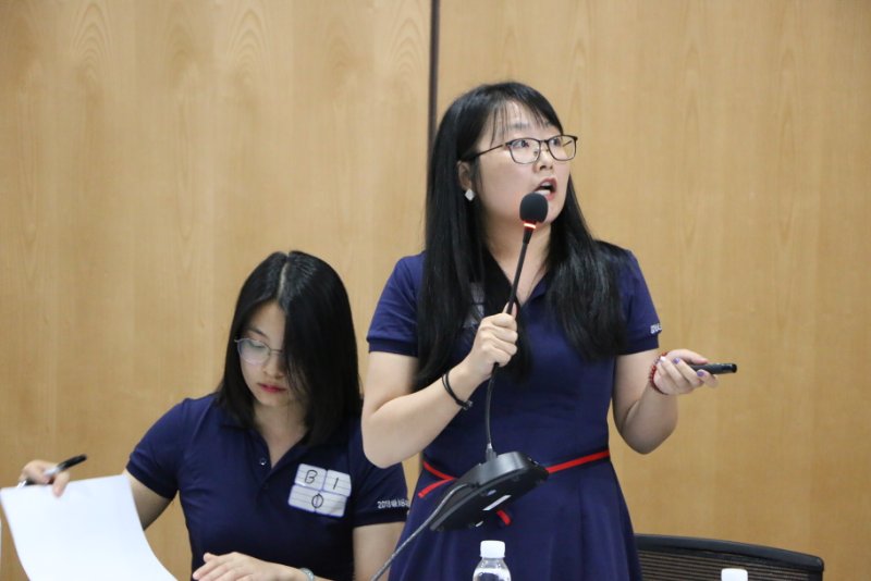颁奖环节结束后,本次案例企业领导管瑞卿女士对比赛做了精彩点评,管总对本次大赛选取常州强力电子新材料股份有限公司的成长案例作为比赛案例感到非常荣幸,她对参赛队员仅在72小时内对企业进行如此深入的调研并提出有效可行的解决方案给予了高度肯定,她认为队员们资料准备的既充分又完备,分析问题既精准又透彻,队员们提出的解决方案有效可行,这些方案将对强力公司的领导决策和下一步的发展方向带来很高的参考价值。最后,管总还为大家分享了强力新材如何成为行业隐形冠军的奥秘。管总精彩的点评为本次案例大赛画上了圆满的句号。