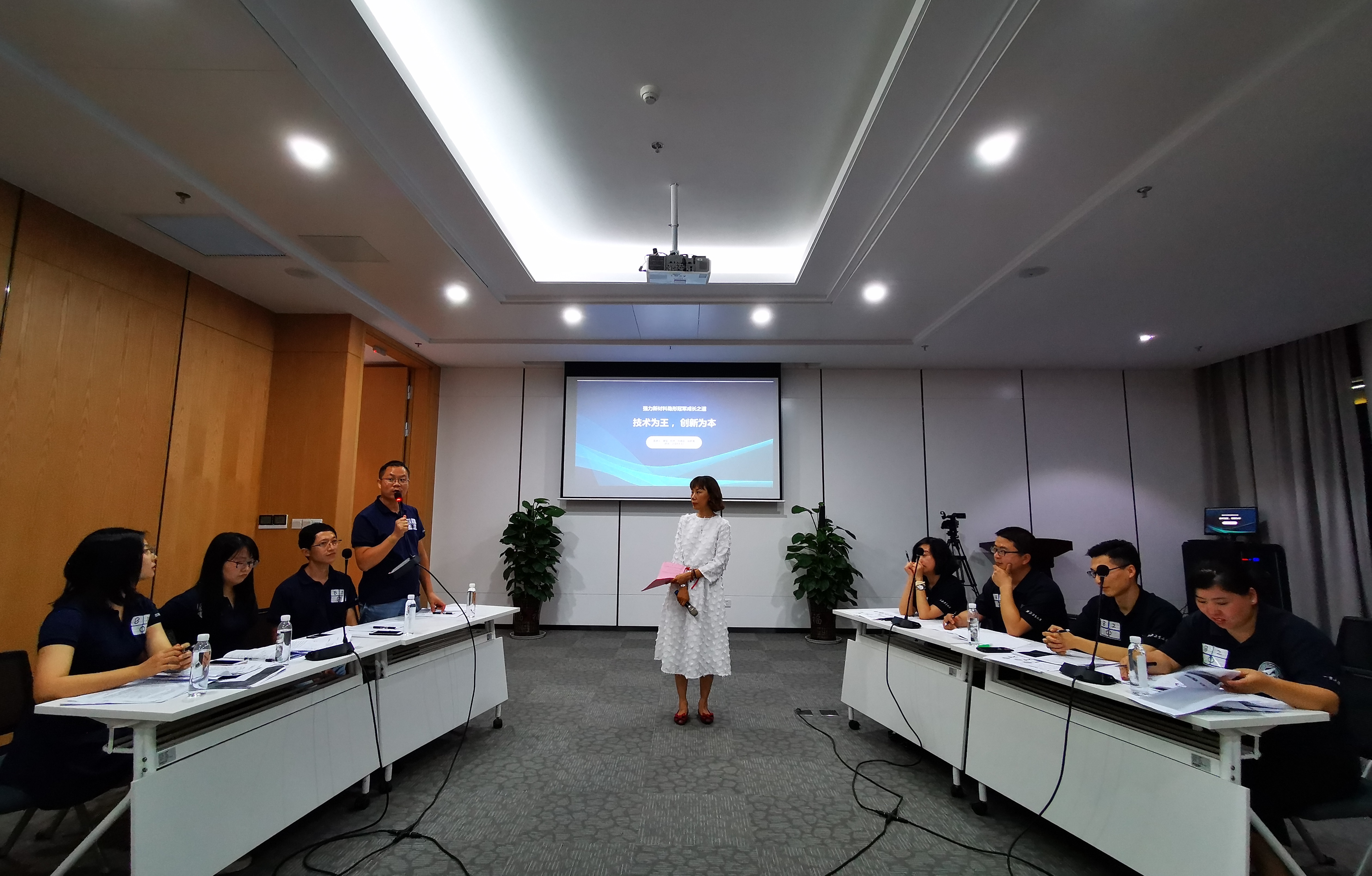 本次大赛分为赛前盲审和现场PK 两个环节,共有来自深圳研究院的南粤队、青岛研究院(济南)的致远队、长三角研究院的予爱芳成队和姑苏队四支队伍参加比赛。他们都是各研究院通过初赛选拔出的优秀队员。根据比赛抽签结果,由长三角研究院予爱芳成队对阵青岛研究院(济南)致远队,深圳研究院南粤队对阵长三角研究院姑苏队。6月14日下午,金帆主任向各位评委详细介绍了大赛的比赛规则和评分规则。评委们对照评分规则认真审阅各参赛队提交的纸质版案例分析PPT和案例分析报告并展开盲评。