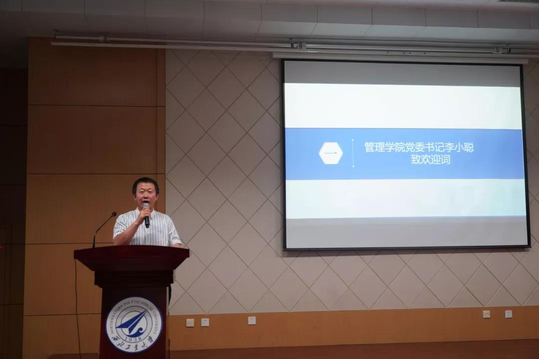 接着陈琳副院长为大家进行新生入学指导。陈琳副院长从学校介绍入手,让大家对学校有了更为立体的认识。她介绍了管理大类的专业学习、保研出国等一系列情况,谈到了管理大类的师资力量和学生学习发展上的优势。她借用时下热门的“西市开市鼓响起之时,便是长安新之一日”一句祝愿新生树立远大的学习目标,牢记“公诚勇毅,三实一新”校训,开启属于自己精彩辉煌的新时代。