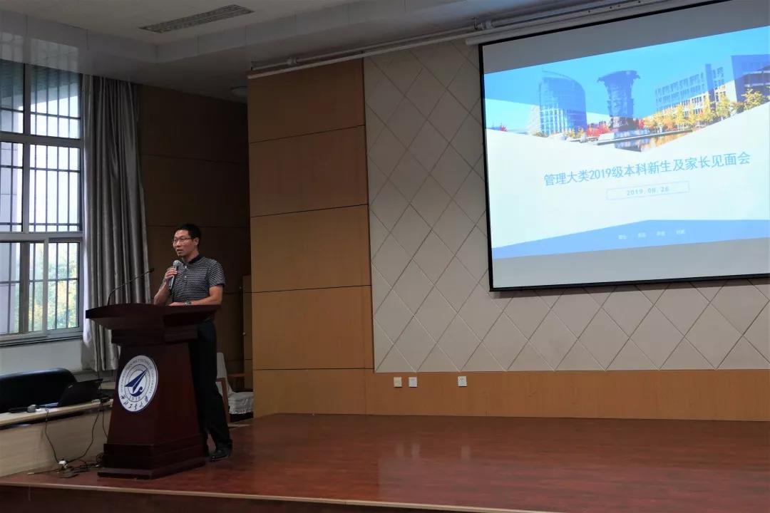 曹子尧副书记首先对2019级本科新生及家长的到来表示诚挚的欢迎,并一一介绍了到场的领导与老师,并向新生和家长介绍了管理大类强大的师资队伍。