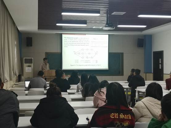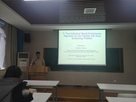 210教室做了题为“求解柔性作业车间调度问题的师徒进化算法”的学术报告。本次报告会由王阳副教授主持,学院部分师生参加了此次报告会。