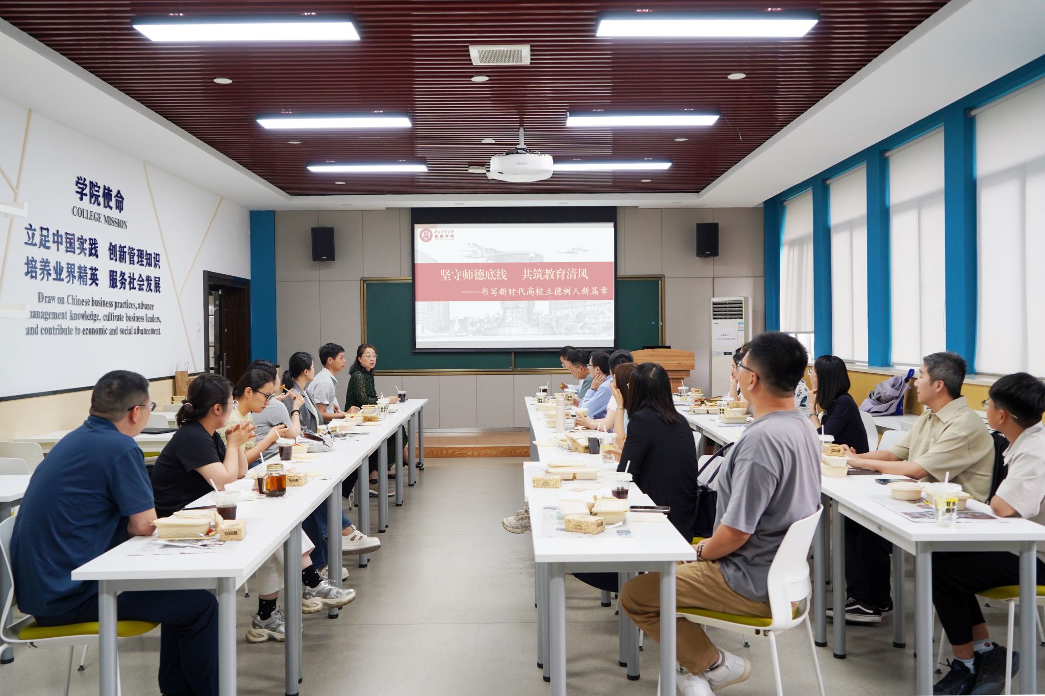 为进一步强化学院师德师风建设,切实增强八项规定精神学习教育的实效性,5月22日,第三十期青禾沙龙特别邀请学院党委书记张爽担任主讲嘉宾,带领青年教师共同学习师德师风建设的相关文件政策,强化师德警示教育,引导青年教师筑牢思想根基、涵养高尚师德。二十余名青年教师参加了本次座谈会,活动由青工委员李纪柳主持。