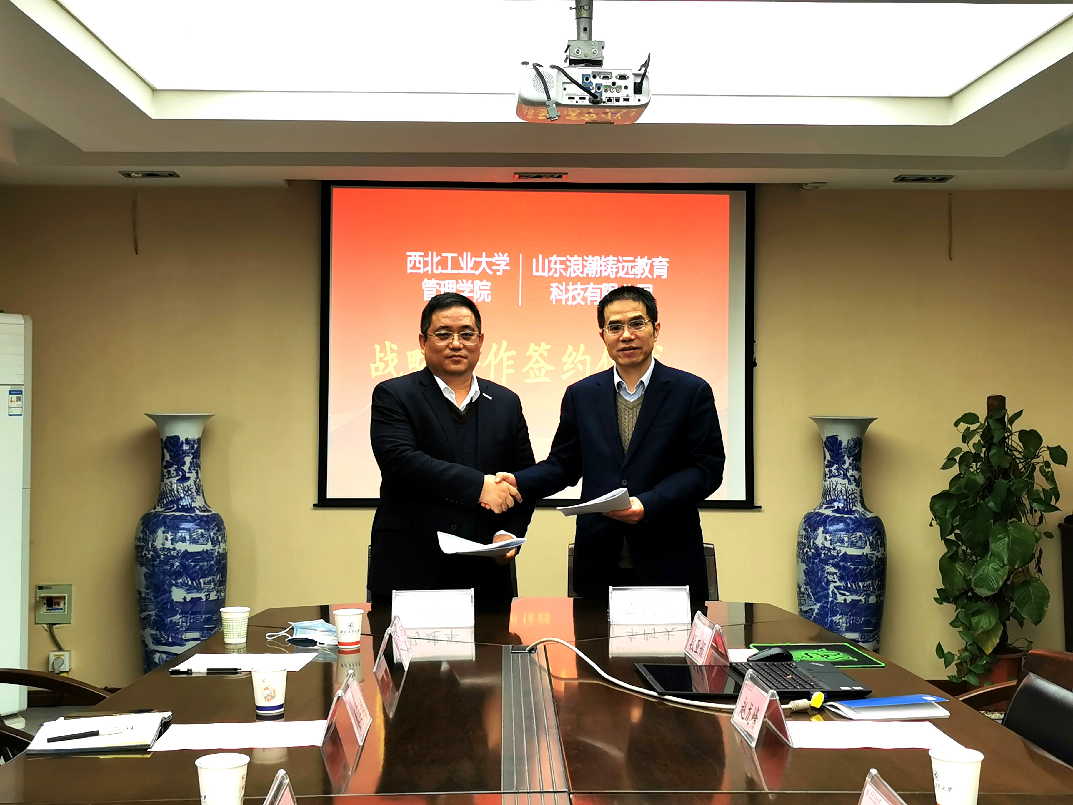308会议室顺利举行。山东浪潮铸远教育科技有限公司总裁马建军、西安分公司总经理秦海鸿和副总经理梁珊,开车漫画