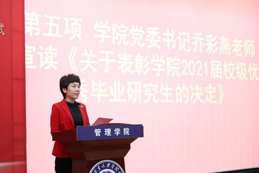 2021届校级优秀毕业研究生的决定》,她希望被表彰的优秀毕业生珍惜荣誉、再接再厉,在工作岗位上继续发扬母校的优良传统,以实际行动回馈社会,为实现伟大的中国梦奉献自己的青春和才智。同时还号召在校生要以优秀毕业生为榜样,坚信理想信念,勤奋学习,努力成长为高素质人才。