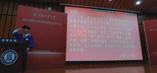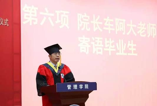院长车阿大老师结合自身感悟向所有毕业生深情寄语,希望同学们以初心使命践行责任和担当,以百折不挠面对工作和生活中的挫折,以终身学习的姿态打造自己为坚不可摧的巨人,在今后的学习工作和生活中脚踏实地、不断创新,在一个又一个新的起点上取得骄人的成绩,在各行各业续写“西工大现象”。