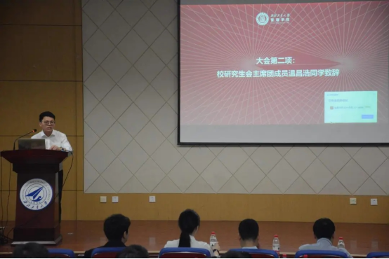 在过去一年学生工作所取得的成绩,并向青年学子提出了四点希望——坚定理想信念,志存高远;刻苦学习,奋发有为;学生代表以身作则,乐于奉献;在学生会、研究生会联系和服务广大学子的平台上,深入到学生中,锐意进取,扎实工作。