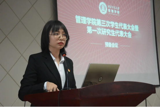2020-2021学年研究生会主席团成员杨帆同学进行了研究生会工作报告。上学年研究生会主要工作回顾——研究生会不断创新工作模式,关注学生权益与发展,改善学生生活,顺利完成了所有工作计划,并取得了显著成效,部门分工合理有序。研究生会未来的工作展望——提升综合服务能力;发挥每个部门、每个成员的优势;完善改革制度;走进学生,增强服务。