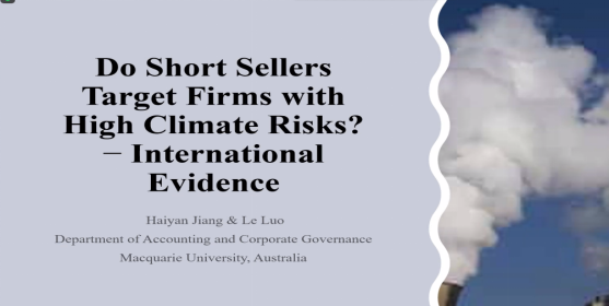 2021年7月23日上午10:00,新西兰麦考瑞大学Haiyan Jiang副教授通过ZOOM平台做了题为“Do short sellers target firms with high climates risks?-international evidence”的讲座。本次讲座由苏坤教授主持,开车漫画