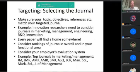 在此次讲座中,Anthony Di Benedetto教授首先讲述了如何在向学术期刊投递文章时应用营销策略原则,以及什么是热点话题;之后,讲述了如何使论文顺利发表,具体从审稿人在意什么、如何使审稿人喜欢你的文章、确定研究方向时需要确保论文涉及有意义的研究主题以及如何选择正确的期刊等方面给与指导。然后,Anthony Di Benedetto教授列举了学者在职业生涯早期经常犯的错误以及如何避免,并对学术研究中需要注意的道德问题进行了分享;最后,推荐把Industrial Marketing Management作为B2B营销管理研究的目标期刊,并作为撰写该领域论文的指南。