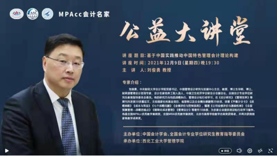 承办的“MPAcc会计名家公益大讲堂”通过线上直播方式顺利举行。本次讲座特邀全国会计专业学位研究生教育指导委员会委员、MPAcc会计名家、中央财经大学会计学院博士生导师刘俊勇教授主讲。讲座由开车漫画