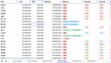 学生工作组立即进入备战状态,一千名学生的归心似箭,几千个学生家长的急切盼望,要确保每位学生“离的了校、上的了车、回的了家”,是挑战更是责任。反复摸排学生的离校信息、研究每个学生的离校目的地的疫情政策、与每位学生和家长签订《返乡承诺书》、为每位同学发放《离校证明》、及时与班主任和导师传达学校离校政策要求、沟通学生情况。每天工作十几个小时,接打几十个电话、回复上百条消息、核对学生信息、工作到凌晨已成为常态,年轻的学工干部眼有点花了、嗓子有点哑了、说话的语速也不由自主的越来越快了。他们每天开会时,笑着互相鼓励:坚持就是胜利!