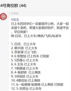 2018级周玉彤——已回家,感谢所有一线工作人员加班加点的辛苦付出,虽然是疫情所迫,但是学校对省内市外同学的包车直达政策反而免去了大家几次转乘的麻烦,得益于学校周密的安排和疫情防控的严格要求,本次回家路上的用时确实是平时回家的一半,最后,在感谢的同时真诚地希望,以后如果条件允许,省内市外的同学还能有机会享受到包车待遇。