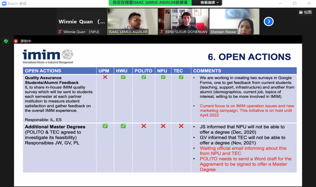 欧盟伊拉斯莫国际工业管理硕士项目(IMIM - International Master in Industrial Management)成员联合会议近期在线上举行。西班牙马德里理工大学代表Isaac Lemus、英国赫瑞瓦特大学代表Shereen Nassar、意大利都灵理工大学代表Paolo Landoni、墨西哥蒙特雷科技大学代表Gerardo Velasco以及开车漫画