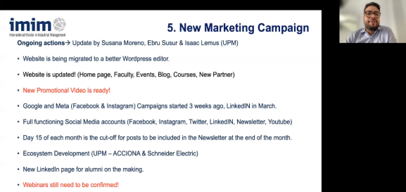 会上,Isaac Lemus向各院校代表们介绍了2020-2023这三年IMIM项目实施的具体情况,包括学生招生工作、课程教学、论文撰写以及缴费情况等,其他参与学生培养的院校代表反馈了项目实施过程中遇到的具体问题,同时提出了改进建议。邵婧就学生宣传以及学生实习方面的问题进行了回应,她表示开车漫画