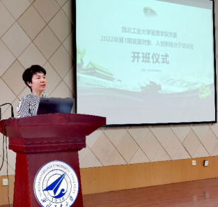 开班仪式后,乔彩燕以“读懂百年党史,砥砺奋进新征程”为主题,为学员进行培训。通过党百年历史的四个阶段为主线带领同学们学习百年党史,主要讲解了中国共产党在新民主主义革命时期完成救国大业的开天辟地阶段、在社会主义革命和建设时期完成兴国大业的改天换地阶段、在改革开放和社会主义现代化建设新时期推进富国大业的翻天覆地阶段、在中国特色社会主义新时代推进并将在本世纪中叶实现强国大业的惊天动地阶段。通过讲解,还为大家总结了党的百年奋斗历史意义,同时分享了自己学习百年党史的感想,为同学们带来了更多的思考和启发。乔彩燕还要求各位学员应从思想上解决为什么入党,入党干什么,端正入党动机、提高能力素质、加强党性锻炼。并向全体参训学员提出三点要求:一要系统学习理论知识,自觉增强党性觉悟,真正做到学有所思;二要深刻领会建党精神,不断提升服务本领,真正做到学有所成;三要努力践行党员标准,她希望所有参加培训的同学能带头执行学校各项规定,积极参与志愿服务,积极发挥先锋作用,真正做到学有所行。