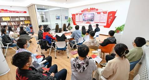 研究生第四党支部党员代表在党员活动室集中收看开幕会直播