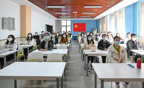 研究生党员代表在教室集中收看开幕会直播