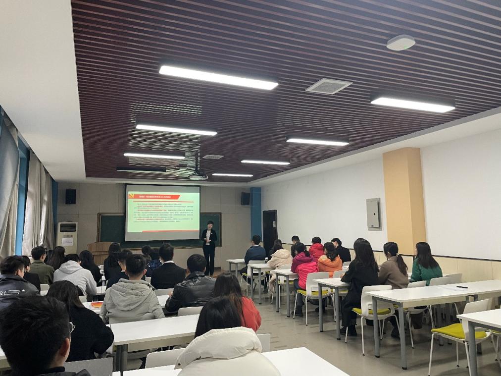 乔彩燕书记从《条例》修订的背景过程和意义、修订完善的重点内容等方面,进行了全面详细的解读。《条例》是对高校基层党组织工作做出的全面规范,旨在构建高质量的高校党建工作体系,应当学深悟透、融会贯通。乔书记解读的同时穿插党支部知识问答帮助同学们巩固党史学习,强调党支部支委要认真学习贯彻《条例》,全面掌握《条例》内容,严格执行《条例》规定,坚持学思践悟,做到知行合一,引领学生党支部高质量发展。
