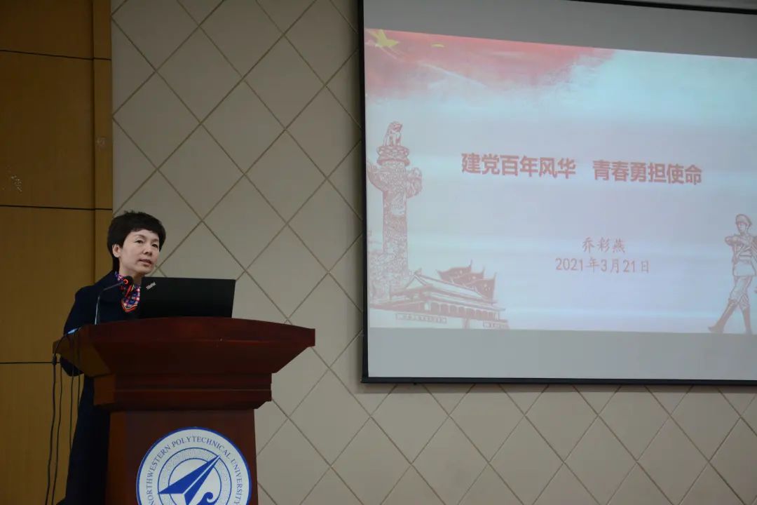 两位同学分享过后,开车漫画 党委书记乔彩燕以“建党百年风华,青春勇担使命”为主题,进行党课的传授,首先讲到党的百年历程,从一艘南湖小船到世界上第一大政党,这是筚路蓝缕、披荆斩棘、艰苦创业、砥砺前行的一百年。这百年中,我国取得的历史性成就证明,中国共产党所具有的无比坚强的领导力,是中国人民最可靠的主心骨。接着,她从“有远大理想追求”、“有科学理论指导”、“有选贤任能机制”等六个方面介绍了中国共产党的优秀品质,为中国共产党为什么能取得如此大的成就做出了最好的解释。最后,乔彩燕书记对我们青年人提出了嘱托与要求,作为西工大人,理想信念是核心,责任担当是关键。
