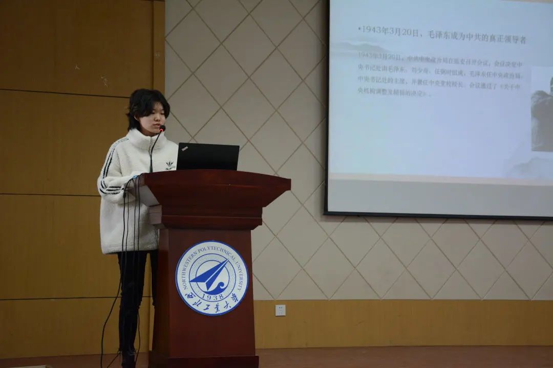 闫格同学分享的主题是——“历史上的今天”。她分享了在党的百年历程中,发生在3月20日这一天的重大事件,包括毛泽东同志成为中国共产党的真正领导者、毛泽东预言1949年成立中央人民政府、七届人大会议召开等等。3月20日看似只是普通的一天,但是“无声处有历史,无声处有党”。七届人大会议中提到的男女平等、香港问题等,即使在今天也是热门话题。所以,党和党史无处不在。