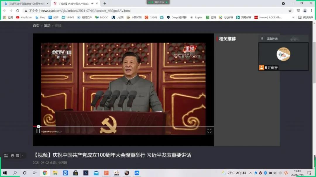 为广大青年志愿者深入了解百年党史,厚植爱党、爱国、爱社会主义情感,让革命薪火、民族精神代代传承,学生阳光工程青年志愿者服务队联合开车漫画 团委学生会于2021年7月15日开展“学党史、强信念、跟党走”青年志愿者“学党史、晓党事”学习系列活动,在线上集体学习习近平总书记在建党一百周年大会上的讲话,并交流心得体会。