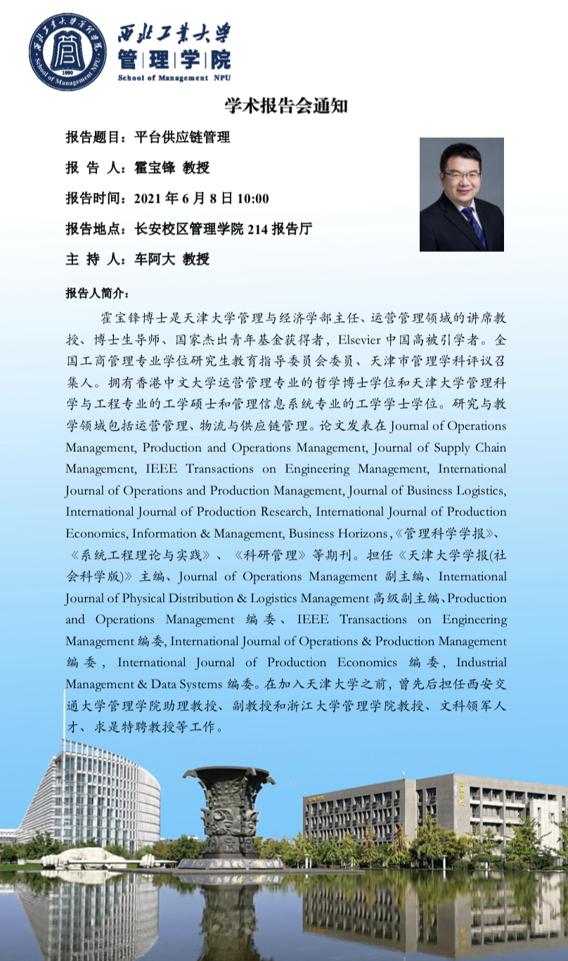 上一条:【学术报告】我国管理科学与工程发展概况及主要学科方向