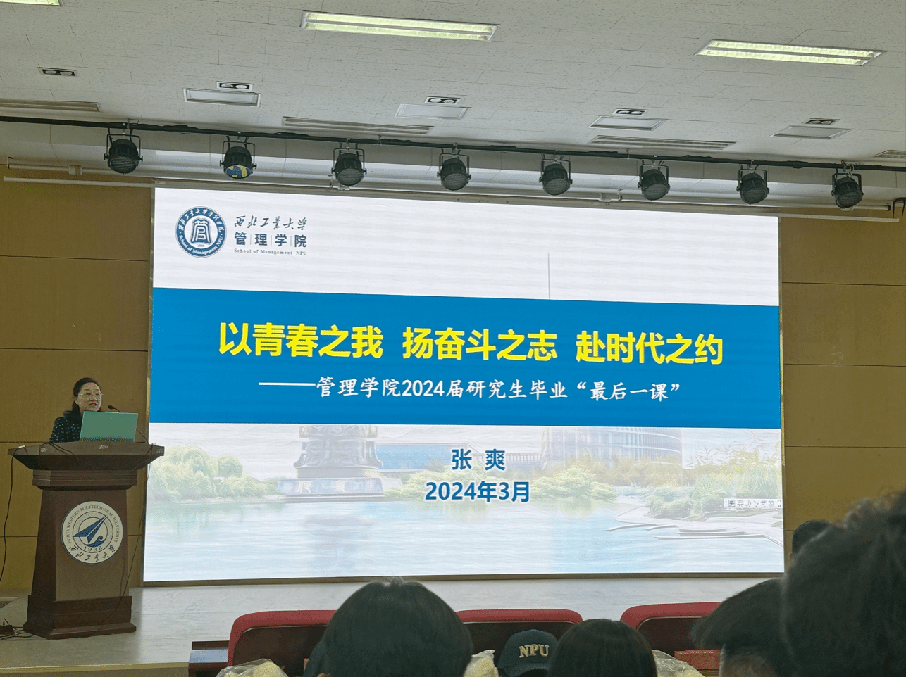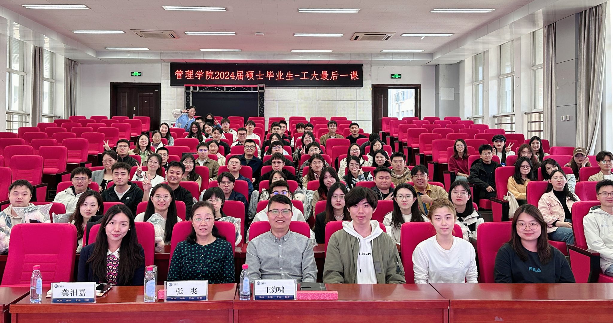党委书记张爽以《以青春之我 扬奋斗之志 赴时代之约》为题,为2024届全体硕士研究生讲授了“工大最后一课”。本次授课由学院党委副书记王海啸主持。