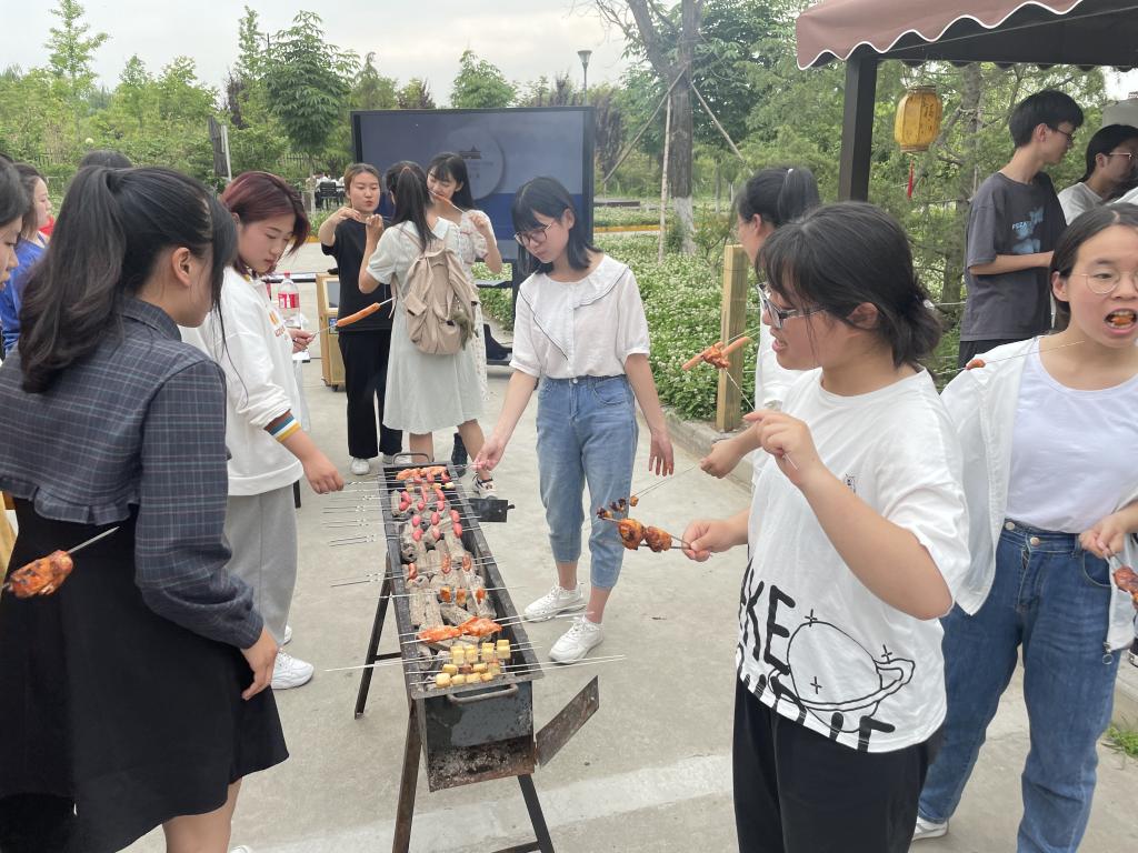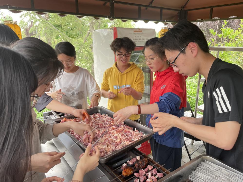 封华老师主持开展本次实践活动。封华老师首先对南山苑老师们的精心准备表达了衷心感谢,并希望同学们认真学习,注意操作安全。随后,由南山苑工作人员为同学们讲解烧烤历史和烧烤准备工作与烧烤技巧。同学们相聚在一起,在一片欢声笑语中,亲身体验从烧烤食材的准备到最后烤制的工作,一同享受自己的劳动成果。