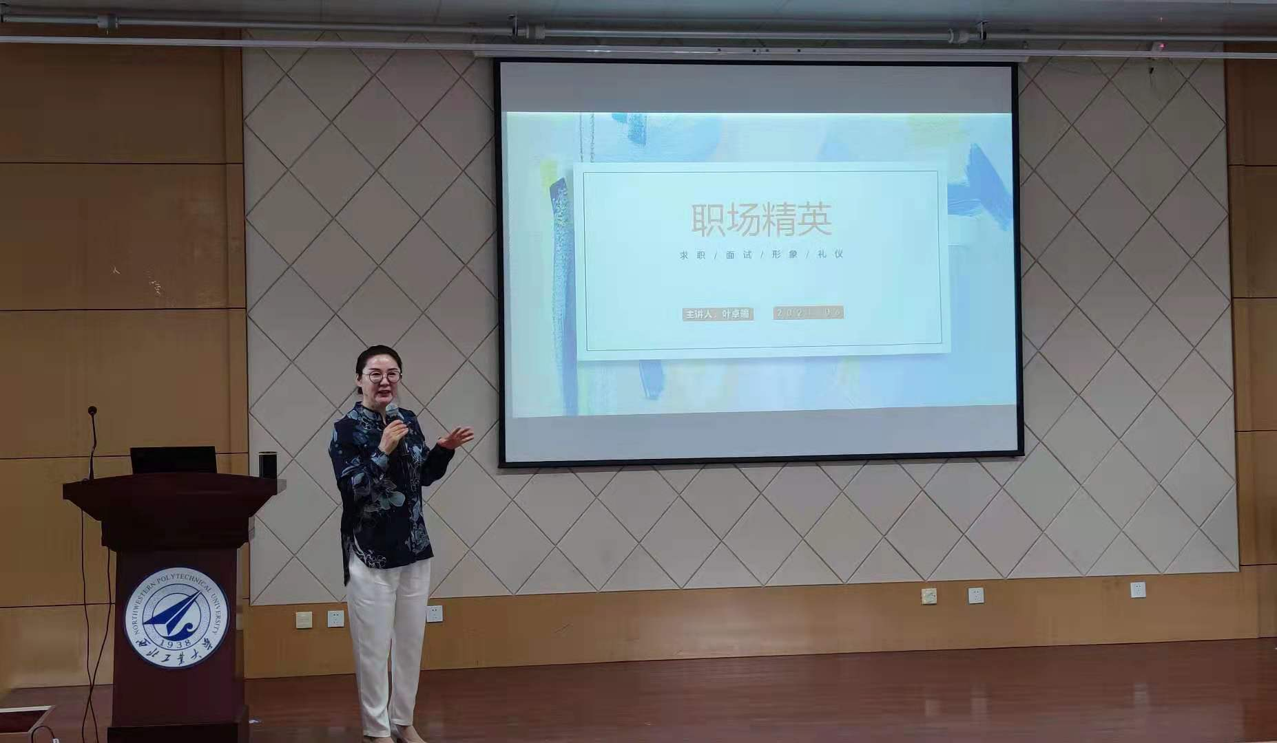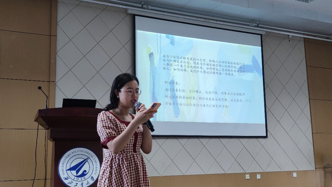 研究生会有幸邀请到叶子老师为我们做“大学生个人形象设计课”第一讲,讲座由辅导员吴蓓老师主持,讲座伊始,吴蓓老师隆重介绍了叶子老师,叶子老师是著名形象设计师,曾担任西安广播电视台所有栏目主持人及嘉宾首席形象设计、西北大学新闻传播学院播音与主持艺术专业电视化妆、形象设计专业课教授等。