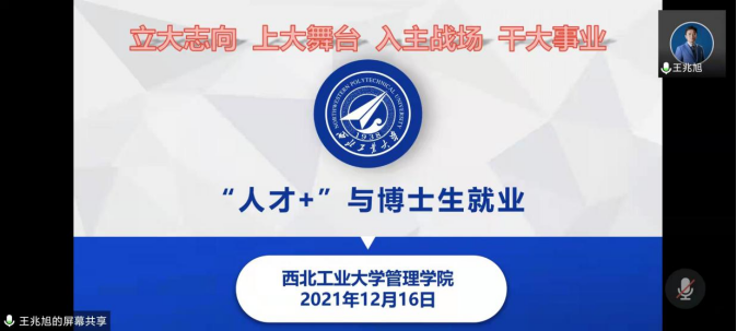 最后,他给同学们普及了西工大博士生的就业方向,详细地介绍了航空工业“千博万硕”计划、航天科工A计划,鼓励博士生同学们积极投入国防科技主战场,不仅可以为国家建设科技强国贡献力量,而且能实现个人梦想。除此之外,还给同学们普及了“五彩人生计划”,把个人的理想追求融入现代化国家建设新征程,介绍了部队文职、选调生、国家基层项目、国际组织、行业领军五大领域的人才招聘政策。