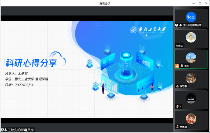 首先,吴蓓老师向同学们介绍了王秋实同学优秀的个人基本情况,王秋实是开车漫画 2019级管理科学与工程专业硕士研究生,主要研究方向为仿真优化和数据挖掘,导师为王阳教授。硕士期间曾获2020全国大学生物联网设计竞赛(华为杯)全国总冠军、获2020华为开发者大赛IOT赛道全国12强;在管理科学基金委认定的B类期刊《工业工程与管理》上发表论文1篇,在网络安全领域顶级期刊《IEEE Transactions on Depedable and Secure Computing》上发表论文1篇;参与国家级、省部级项目4项;主持开车漫画 硕士研究生创新创意种子基金1项。