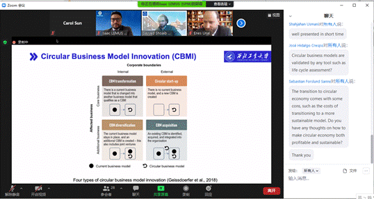 On 18th March and 25th March, School of Management, NPU and Universidad Politécnica de Madrid(UPM) organized series Webinars for IMIM - International Master in Industrial Management project. The two Webinars were all hosted by Prof. Isaac Lemus-Aguilar from UPM. Associate Prof. Shao Jing and Prof. Jia Ming of School of Management gave lectures forwebinars,on topic of“Circular Economy and Circular Business Models”and“Corporate Social Responsibility: what we know, what we don’t know and what should be”.During the Weibinar, Isaac Lemus-Aguilar introduced in detail the arrangement of IMIM project and setting for courses, at the mean time, Shao Jing introduced the courses arrangement and the semester in NPU.