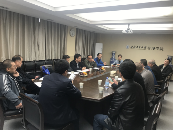 308会议室与学院领导、老师进行了座谈。学院党委书记李小聪、办公室副主任翟润以及潘杰义教授和梁三星老师应邀出席。