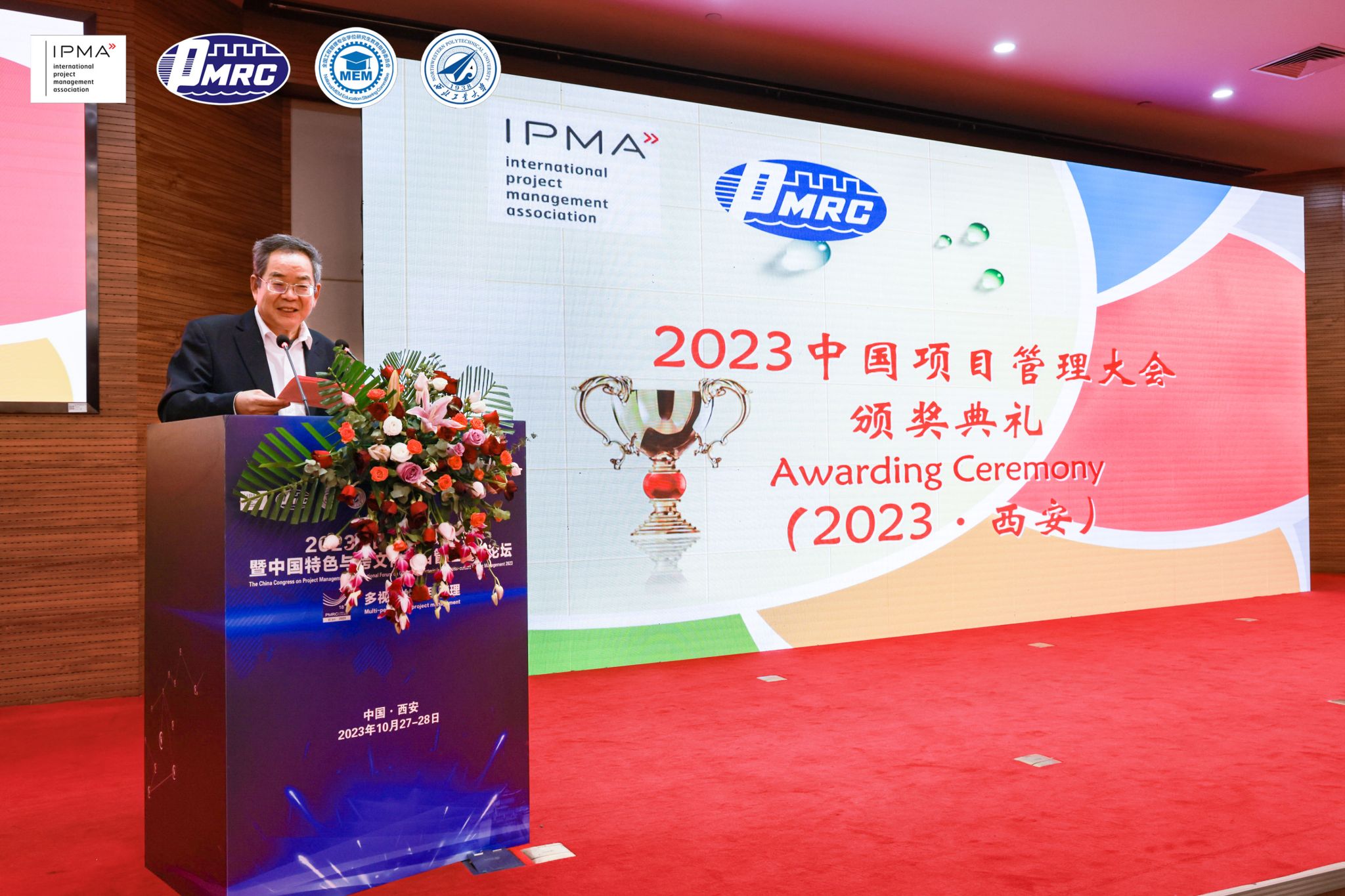 白思俊教授主持颁奖典礼,颁发了2023中国项目管理大会优秀论文和2023国际项目经理大奖。