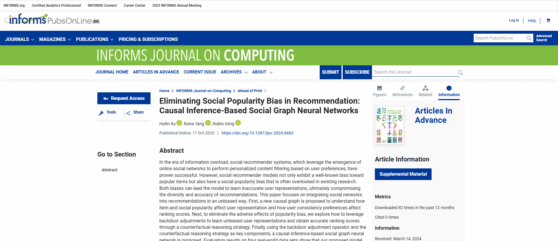 副教授、博士生导师耿瑞彬与合作者的最新研究成果——题为 “Eliminating Social Popularity Bias in Recommendation: Causal Inference-Based Social Graph Neural Networks”(《消除推荐系统中的社会流行度偏差:基于因果推理的社会图神经网络》)的论文, 耿瑞彬副教授为通讯作者。该研究聚焦于社交推荐系统中的“社会流行度偏差”问题。传统推荐算法容易偏向热门内容,而在社交网络环境中,这种偏差会被“社会影响力”进一步放大,导致推荐结果集中于意见领袖或高影响力用户关注的内容,从而损害信息多样性与公平性。