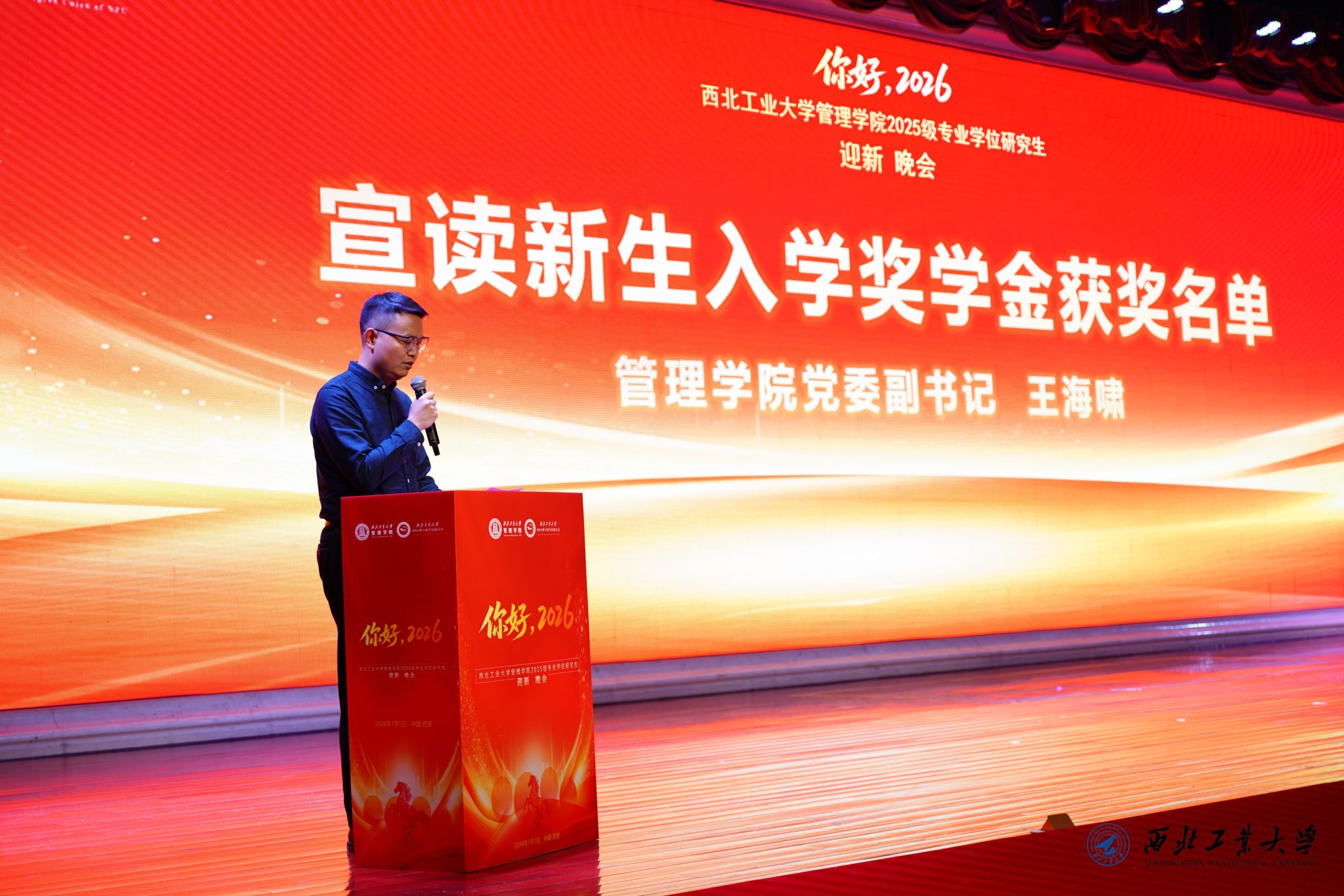 2025级专业学位研究生迎新晚会在金色大厅隆重举行。学院领导、工作人员、部分校友和2025级全体专业学位研究生新生参加了此次晚会。