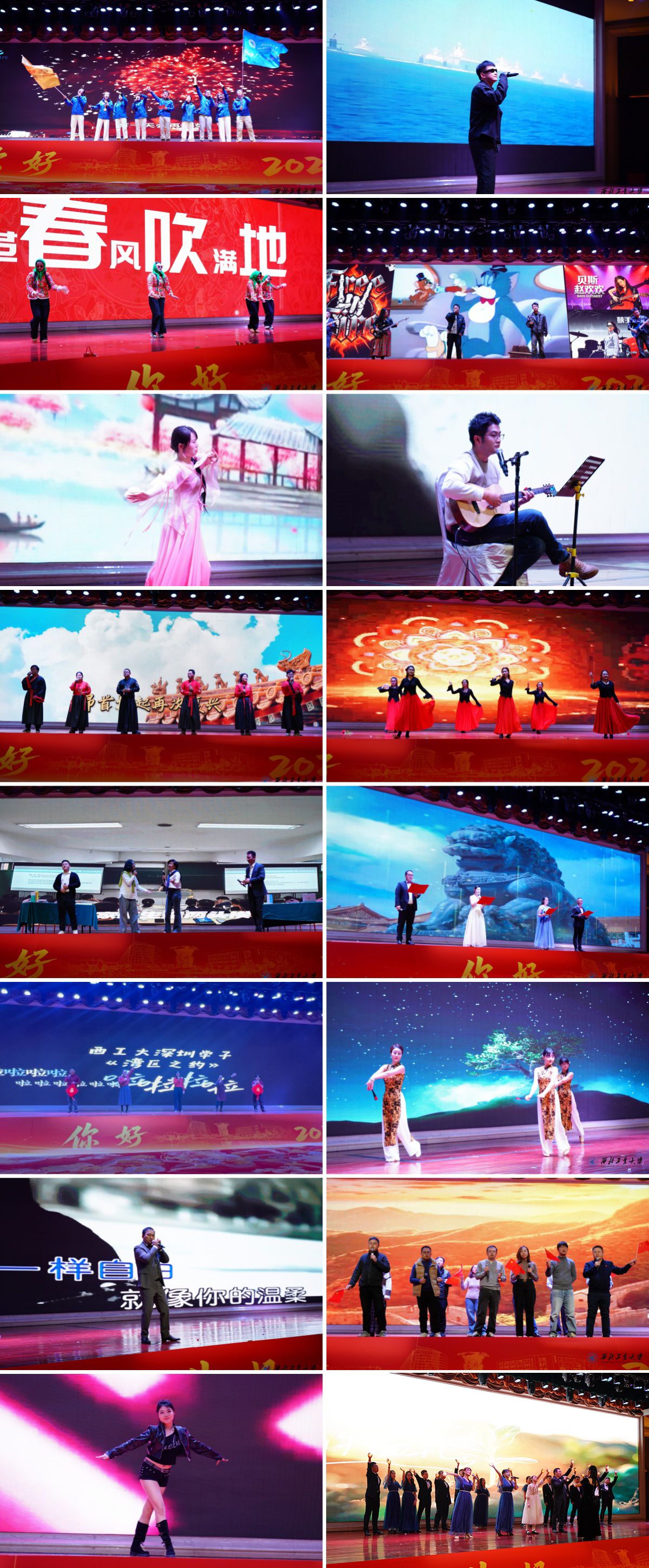 晚会节目精彩纷呈,充分彰显了管院学子的人文素养与创新精神。沙友合唱团以《歌曲串烧》再现“沙漠挑战赛”的团结拼搏;说唱《麒麟》以铿锵韵律诠释文化自信;《改革春风吹满地》以欢快舞步唤醒时代记忆;乐队《new boy》在架子鼓与吉他的交织中奏响青春乐章;古典舞《相思遥》《走卒》刚柔并济,贯通古今情怀;弹唱《温柔》勾勒青春心事;合唱《天地龙鳞》以磅礴旋律展现奋斗豪情;新疆舞《巴郎仔》以异域风情点燃全场热情;情景剧《工大人Fighting》生动演绎“三实一新”的育人实践;朗诵《月光下的中国》抒发深沉家国情怀;湾区歌曲串烧以多元曲风唱响湾区风采;国风爵士《城里的月光》将古典意境融入现代节奏,勾勒中西合璧的韵味;独唱《像风一样自由》诠释生命如风的姿态;合唱《大中国》以歌声礼赞祖国;爵士舞《Black Veil Bride》以炫技舞步释放青春能量。多元节目交织成一场融合传统与现代、激情与温情的艺术盛宴。