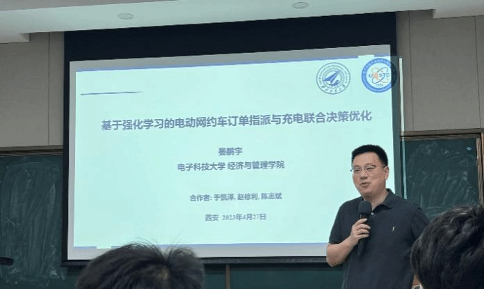 作了题为《基于强化学习的电动网约车订单指派与充电联合决策优化》的学术报告。本次报告由张静文教授主持,开车漫画