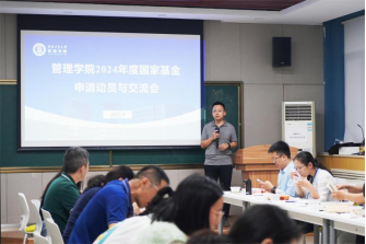 贾明通报了近五年学院国家基金申报获批情况,通过数据及趋势变化分析近年学院国家基金发展走势,并提出希望学院具备申请2024年度国家级基金项目资格的老师都能提早谋划,精心准备,学院将通过举办多轮专家辅导会、一对一指导等形式切实提高基金申报书质量。