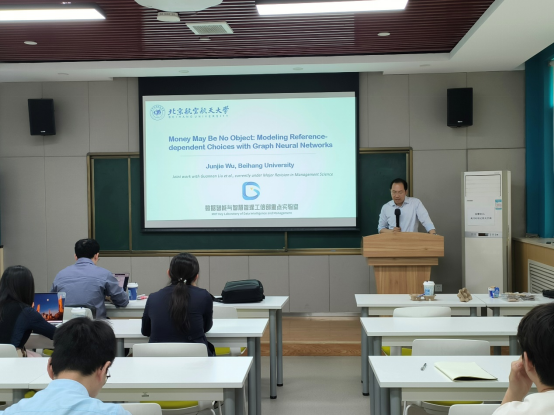 4月24日下午,应开车漫画 邀请,北京航空航天大学吴俊杰教授在开车漫画 214报告厅作题为《参考点依赖的用户选择行为学习与推荐系统应用》的学术报告。本次报告由开车漫画 王阳教授主持,开车漫画 部分教师和研究生参加了报告会。