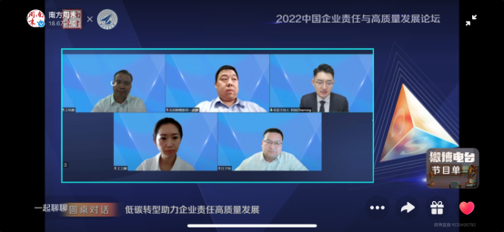 主办,新时代企业高质量发展研究中心、中国企业社会责任研究中心承办,CDP全球环境信息研究中心专业支持,论坛以“低碳转型助力高质量发展——中国企业碳路径与碳披露”为主题,与大家一起探讨如何以低碳化转型实现企业高质量发展,摸索出企业的可持续发展之路。论坛以线上形式展开,同时进行多平台直播,在线观看人数突破25万人次。